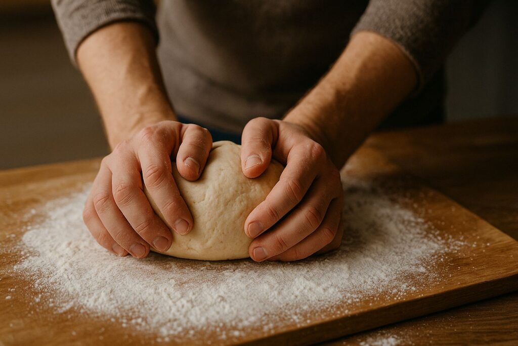 - Mieszanie: Dokładnie wymieszaj składniki i zagnieć masę przez około 10-15 minut, aż będzie gładka i elastyczna.