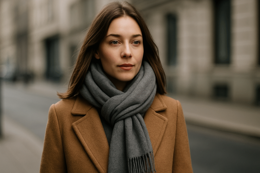 Dobranie koloru chusty do płaszcza to prawdziwa sztuka, dzięki której możesz wyrazić swój styl i nadać stylizacji głębi. Możliwości masz tutaj naprawdę sporo, od klasycznych połączeń, po odważne kontrasty. Najbezpieczniejsze – a przy tym najbardziej eleganckie – jest postawienie na chustę w neutralnym kolorze. Mówię tu o beżu, szarości, czerni czy granacie. Świetnie wyglądają one z większością płaszczy, niezależnie od ich barwy. Taki wybór zapewni Ci spójny i ponadczasowy wygląd, idealny na formalne okazje czy do pracy.