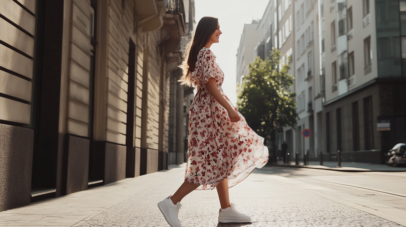Sneakersy to idealne obuwie na co dzień, które świetnie komponuje się z różnymi fasonami sukienek. Jeśli szukasz wygodnej i stylowej stylizacji na spacer, zakupy lub spotkanie z przyjaciółmi, postaw na połączenie sukienki ze sneakersami. Jakie sukienki na co dzień pasują do sneakersów? Odpowiedź jest prosta: prawie wszystkie!