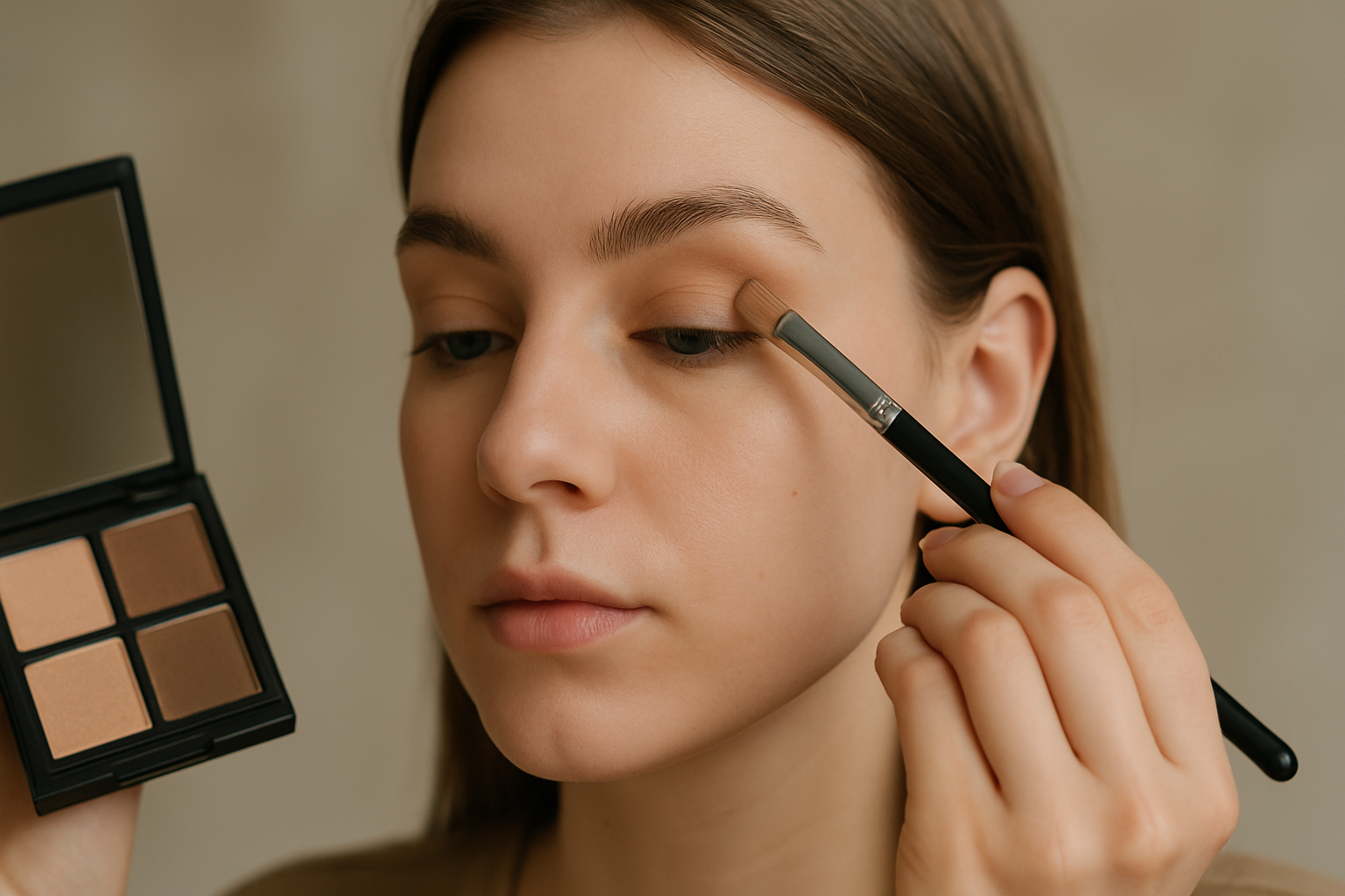 • Neutralna paleta cieni – musi zawierać jasne, średnie i ciemne maty.
